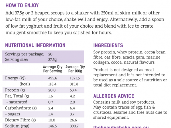 20g Protein, 10g Dietary Fibre, 3500mg Marine Collagen, Only 120 Calories